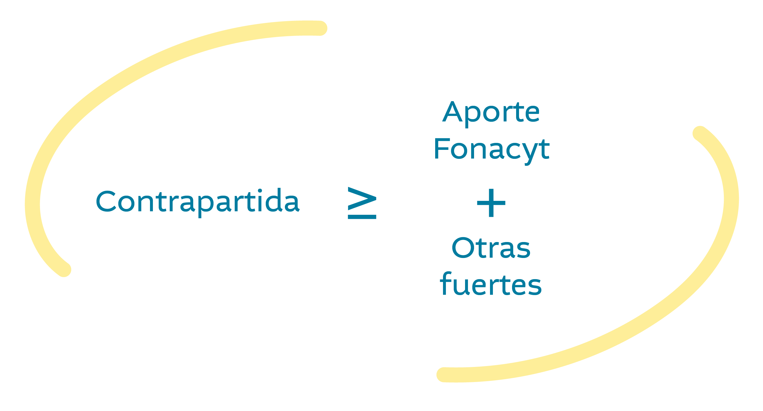 Además, debe tomar como referencia que la contrapartida deberá ser mayor o igual a la sumatoria del aporte de Fonacyt y las otras fuentes de financiamiento.